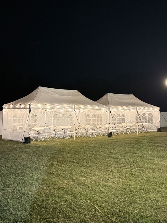 ✔️ (2) 10x20 White Pop-Up Tents (combined for 10x40 coverage)