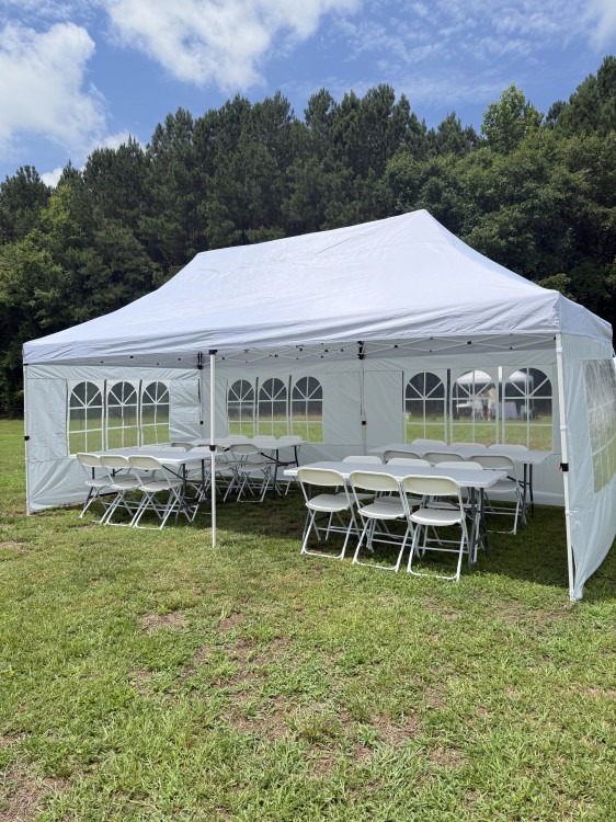 Transform your event into a memorable time with our durable and affordable 10x20 White Tent. Made from high-quality, weather-resistant materials, this tent combines affordability and functionality, keeping your guests comfortable in any weather. The white canvas provides a sophisticated backdrop, ideal for weddings, corporate events, garden parties, birthday parties or any stylish outdoor gathering.